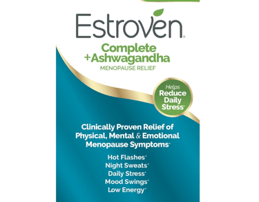 Estroven Complete + Ashwagandha is a drug-free, non-GMO menopause supplement that uses clinically tested rhapontic rhubarb to reduce hot flashes by up to 90% and relieve up to 60% of menopause symptoms. With added ashwagandha for stress relief, it's a safe, hormone-free, once-daily caplet trusted by over a million women each year.