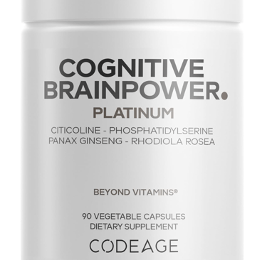 Codeage Cognitive Brainpower Platinum is a nootropic supplement formulated to support memory, focus, and mental clarity. It features clinically studied ingredients that help fight brain fog, improve reaction time and task accuracy, and support visual performance and eye health. With adaptogens like KSM-66 ashwagandha, it also promotes stress balance and a healthy cortisol response, helping support overall cognitive wellness.
