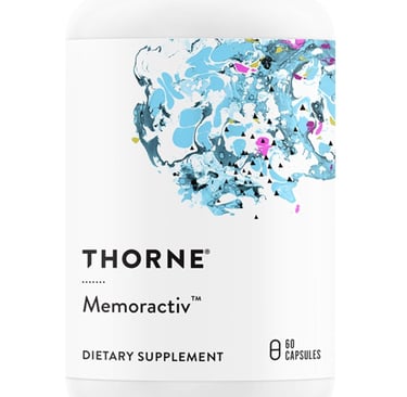 THORNE Memoractiv is a nootropic brain supplement designed to enhance focus, creativity, and concentration. Its clinically studied ingredients support memory speed and accuracy, reduce brain fog, and promote visual performance and eye health. Memoractiv also helps balance stress and cortisol levels to support a positive mood and mental clarity.