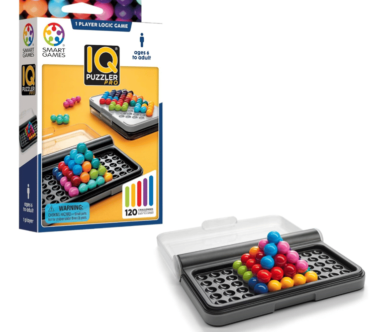 SmartGames IQ Puzzler Pro is a compact yet challenging puzzle game that boosts logic and problem-solving skills with 120 2D and 3D challenges, from easy to expert. Built with durable, high-quality materials and a sturdy travel case, it’s perfect for ages 6 to adult and ideal for brain training on the go. A great gift for puzzle lovers, backed by trusted SmartGames quality.